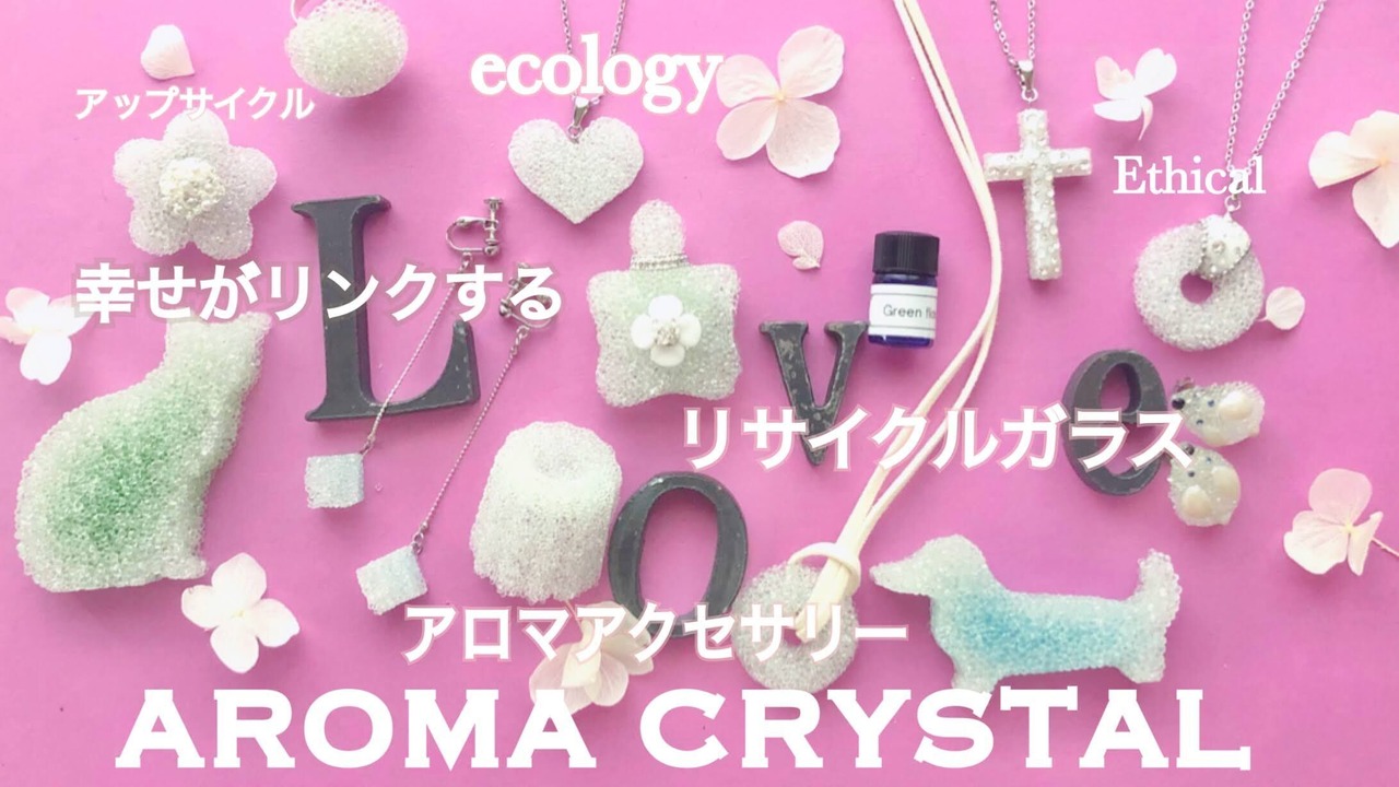 リサイクルガラスから生まれたアロマアクセサリー、