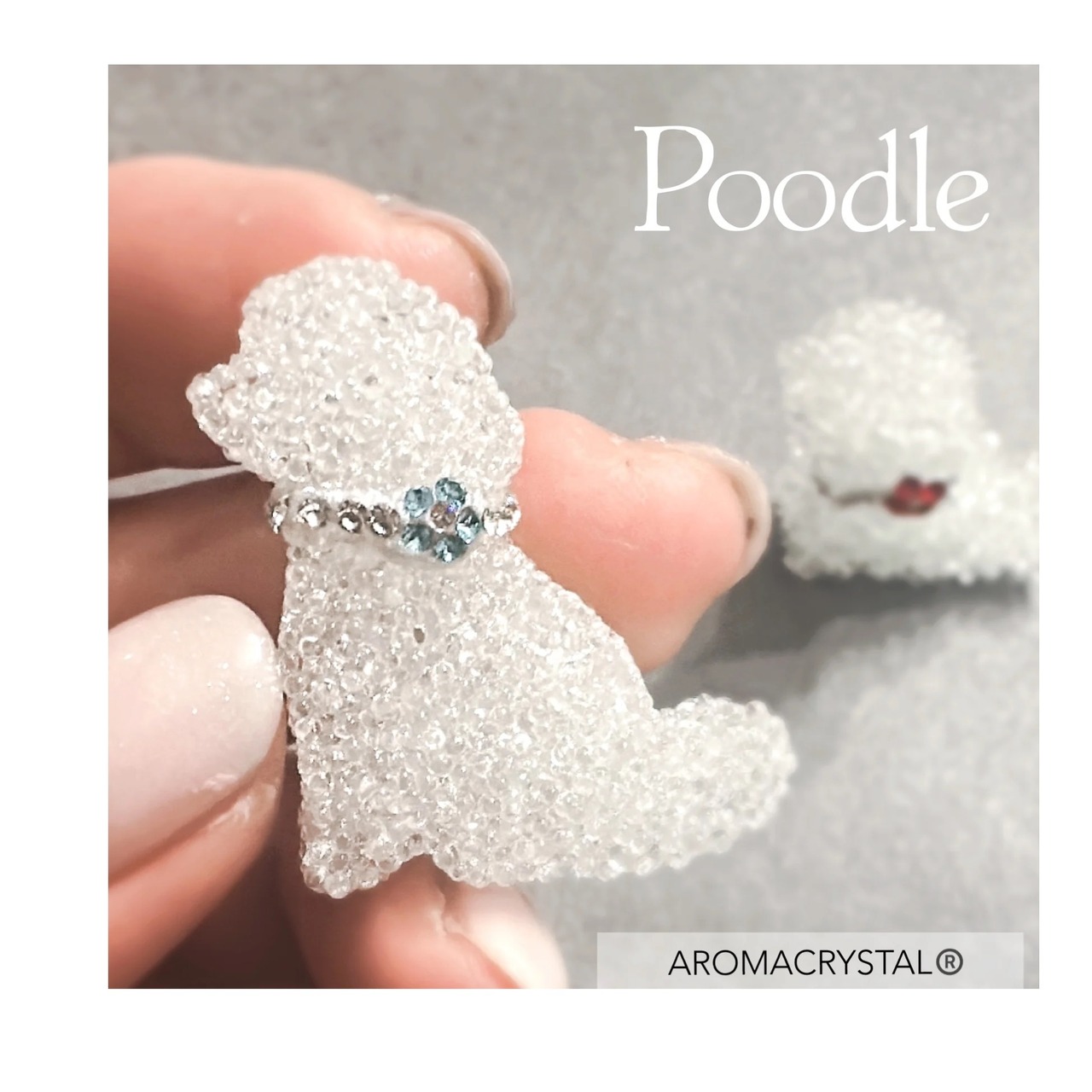 - プードルの首にはかわいいスワロフスキークリスタルを使用しています。